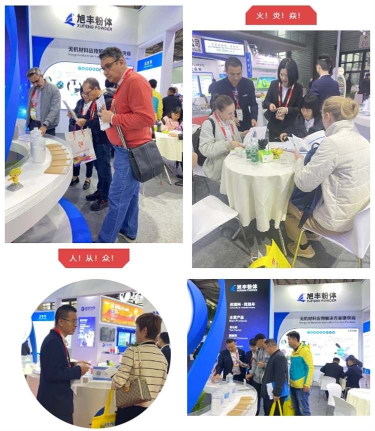 旭豐粉體本次展會依然充滿“新”意,以穩(wěn)重藍(lán)為主色調(diào),展位造型簡約不失大氣,設(shè)有直觀的產(chǎn)品展示區(qū),并以專業(yè)的知識和服務(wù),吸引了行業(yè)大咖駐足參觀和互動交流!