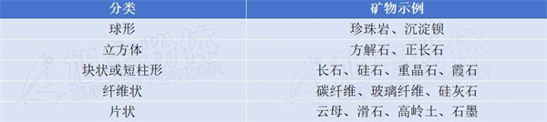 按照幾何形狀:分為球形、立方體、塊狀或短柱形、片形、纖維狀。