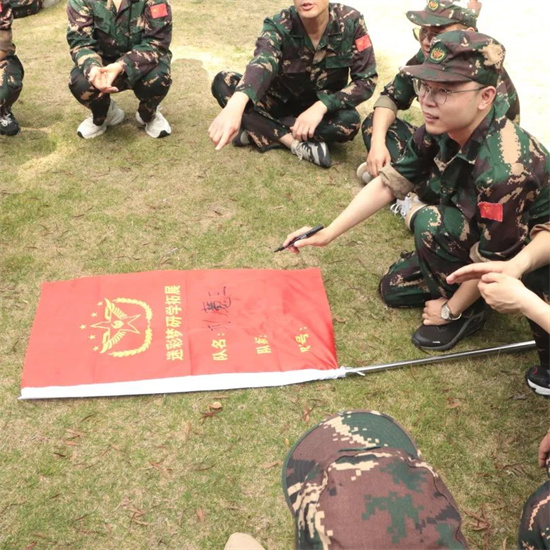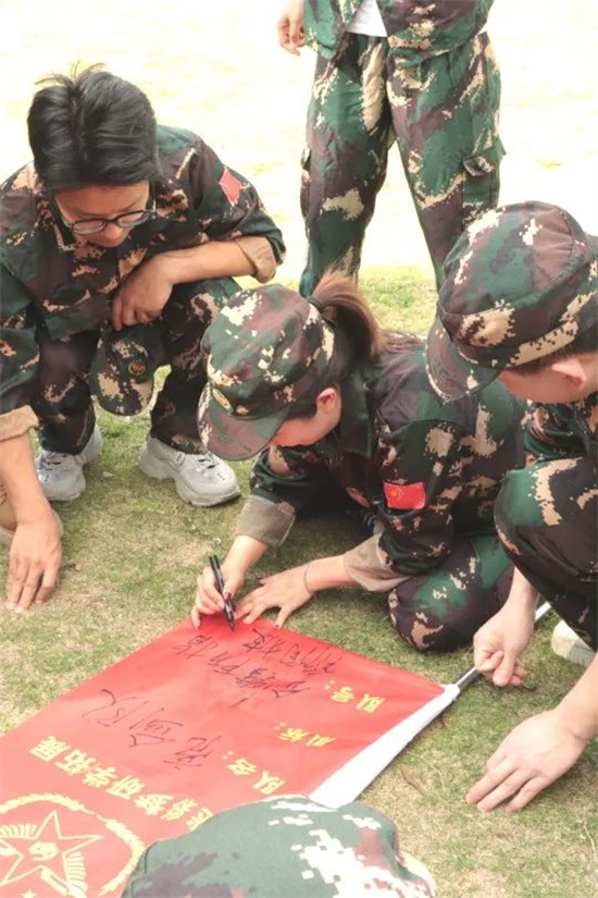 士兵突擊、火速變裝完,軍訓的感覺一下就上來了。經過簡單的桃花朵朵開環(huán)節(jié)、集合分組、起隊名、喊口號一系列操作直接讓我們從開始的拘謹變得士氣滿滿,各團隊就此組建完成。