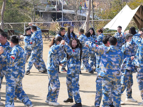 在進行運轉乾坤拓展項目前,大家在動感的音樂中盡情熱舞,歡聲笑語回蕩在場地,每個人臉上都綻放著燦爛的笑容。